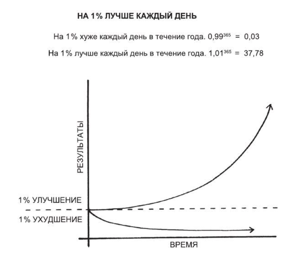 Небольшие изменения (теория изменений на 1%) могут быть не заметны вообще. Но при этом они намного сильнее влияют на нашу жизнь на большой перспективе.